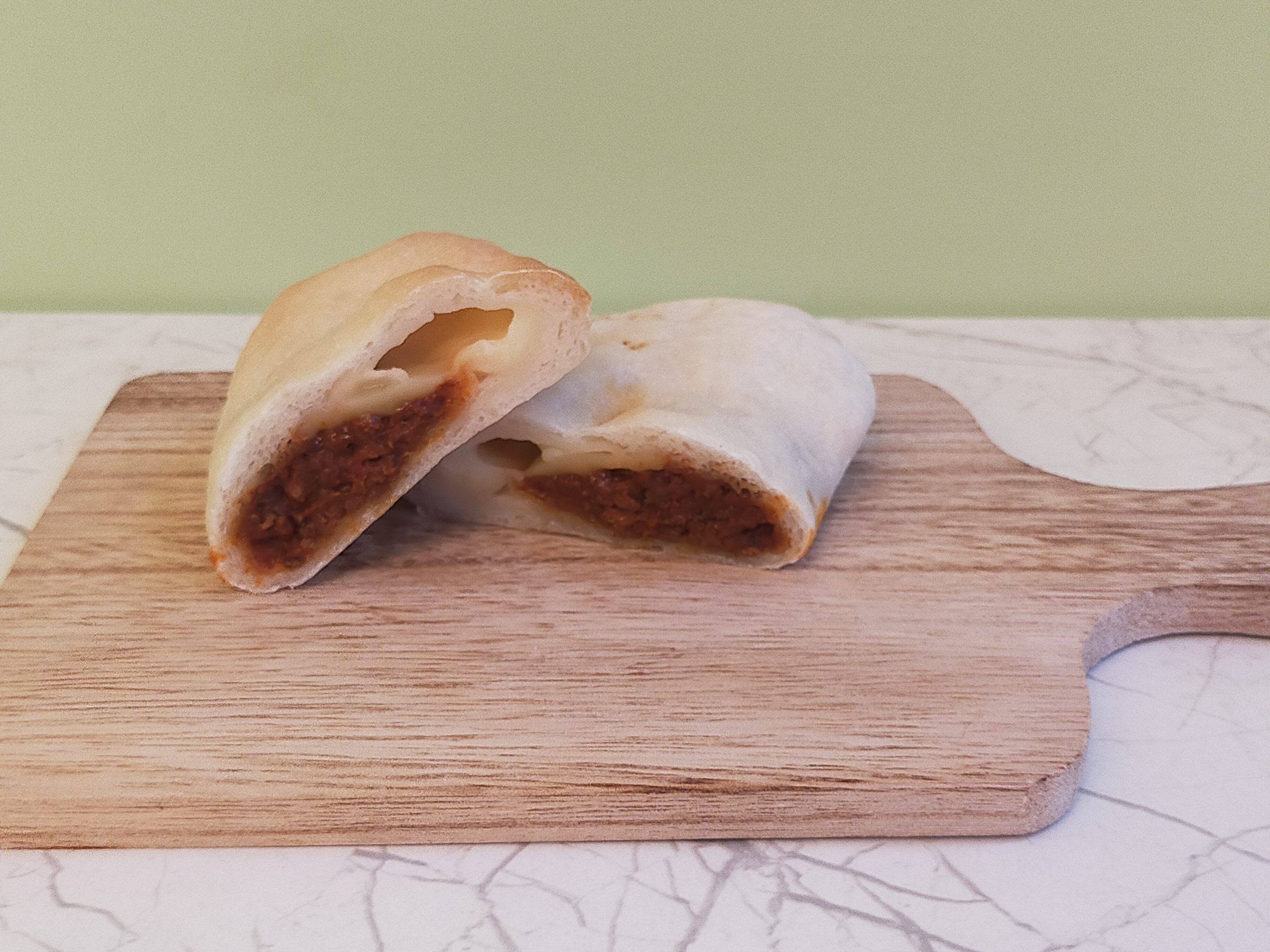![]() | カルツォーネ Calzone | ¥280 | 特製ミートソースと乳製品不使用のチーズ Special meat sauce and dairy-free cheese. |
