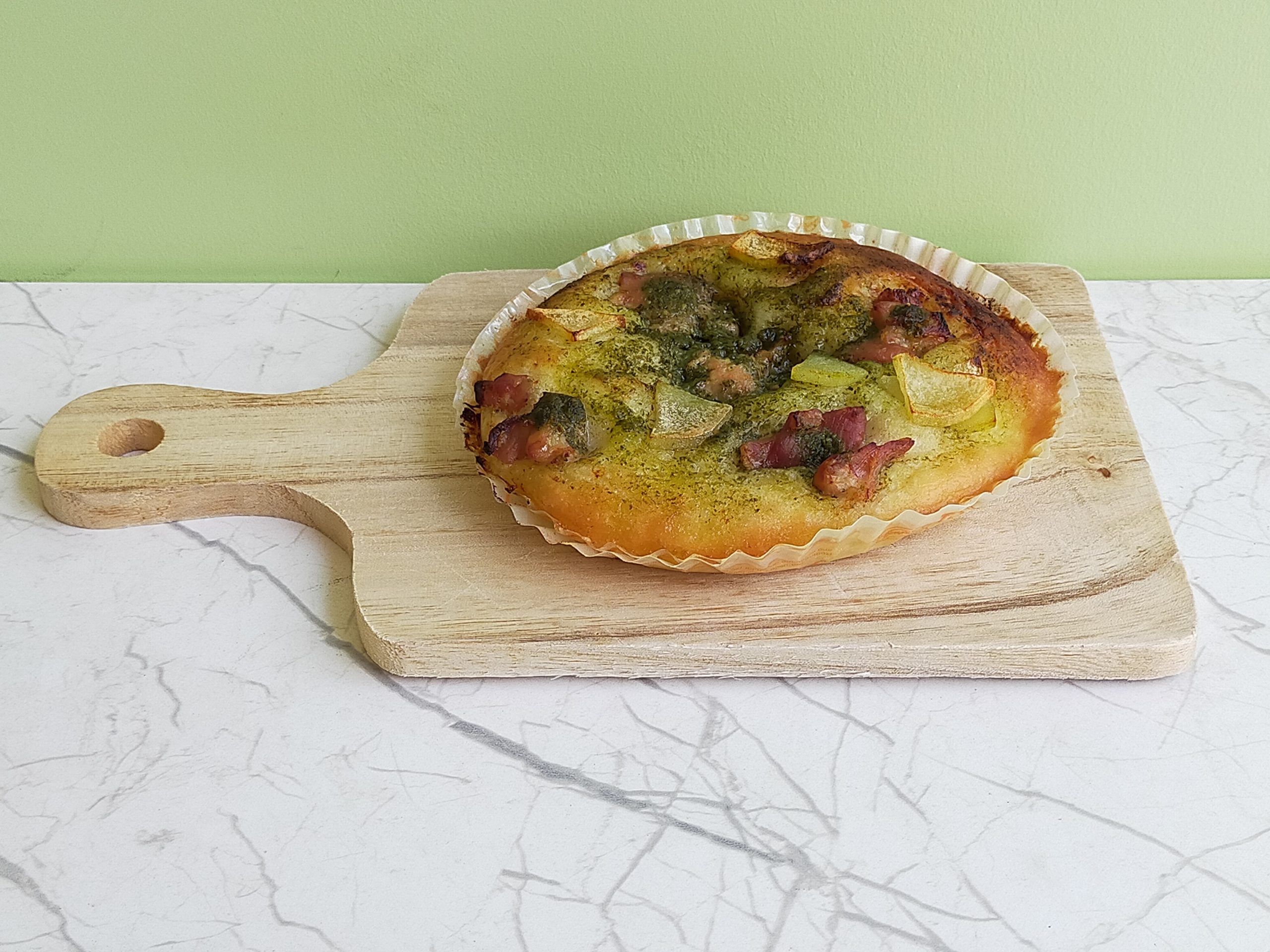 ![]() | バジルチキン Basil chicken | ¥300 | バジルたっぷりのチキンピザパン Chicken pizza bread with lots of basil. |