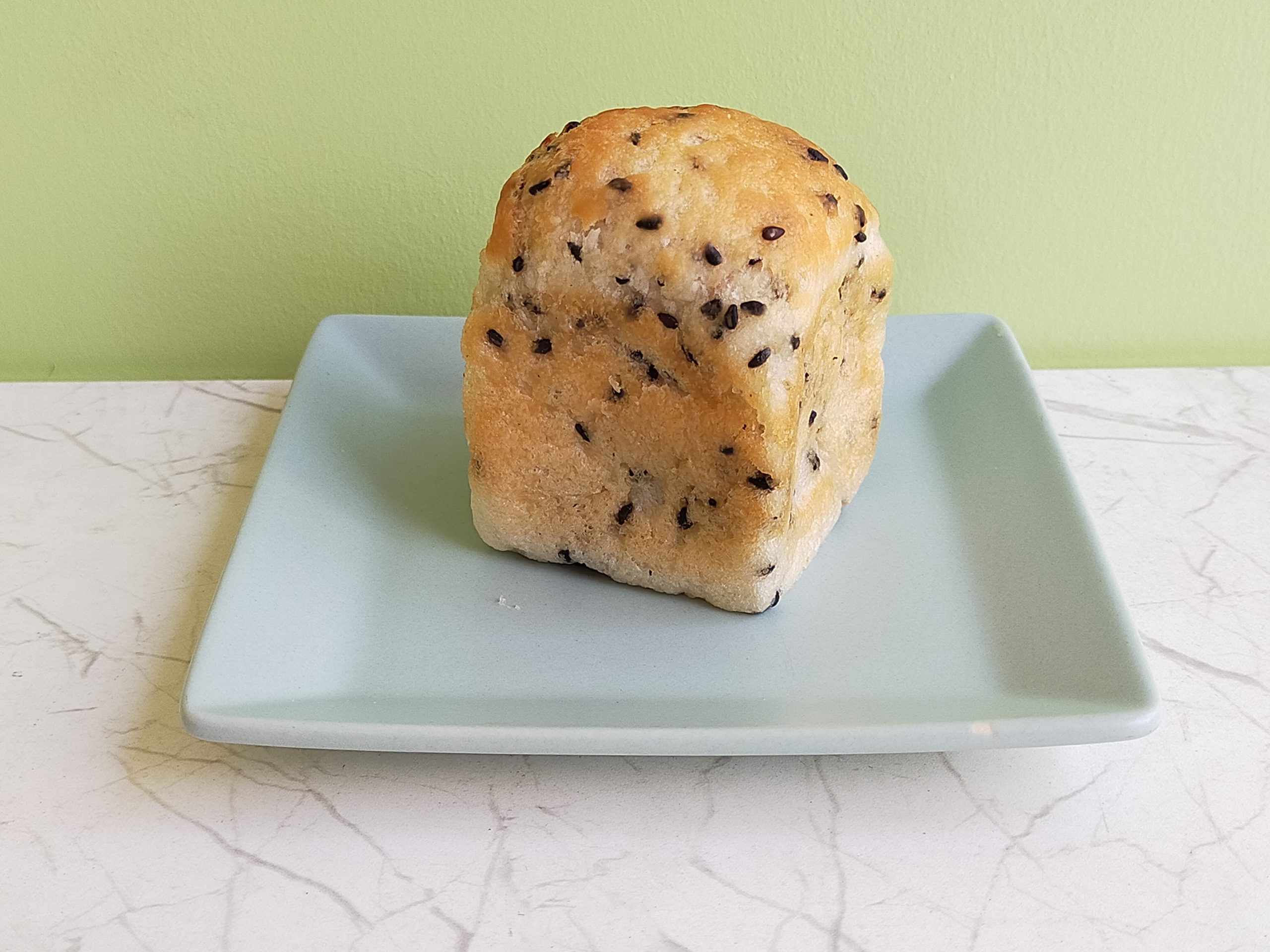 ![]() | 天使のミニ食 ごま Sesame | ¥200 | 黒胡麻を練りこんだ香ばしいミニ食パン Savory bread kneaded with black sesame seeds. |