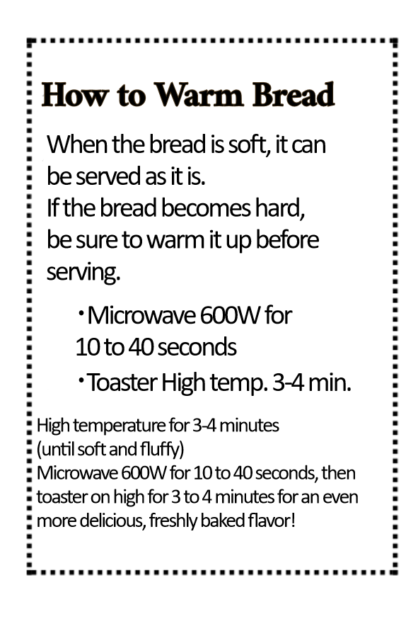 If the bread becomes hard, you can warm it up by following the instructions below.